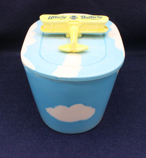 • Vintage Utterly Butterly Sky and Biplane Butter Dish