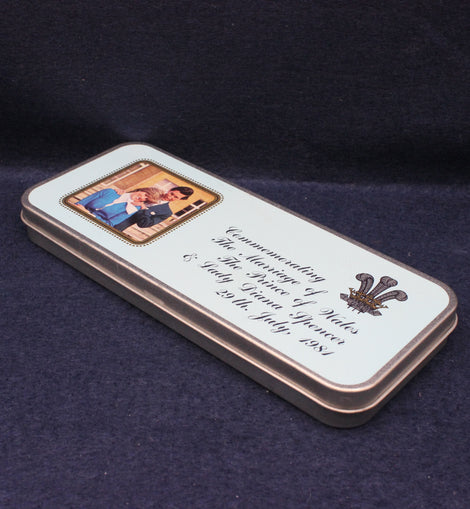 Tin by Blue Bird Commemorating the Marriage of The Prince of Wales and Lady Diana Spencer 29th July 1981.  Approximate Size 18 x 7 x 2cm
