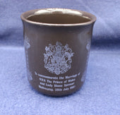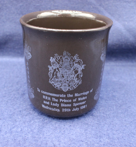 Souvenir mug to celebrate the wedding of prince Charles and Lady Dianna Spencer on Wednesday 29th July 1981. Lovely classy mug with silver decals.