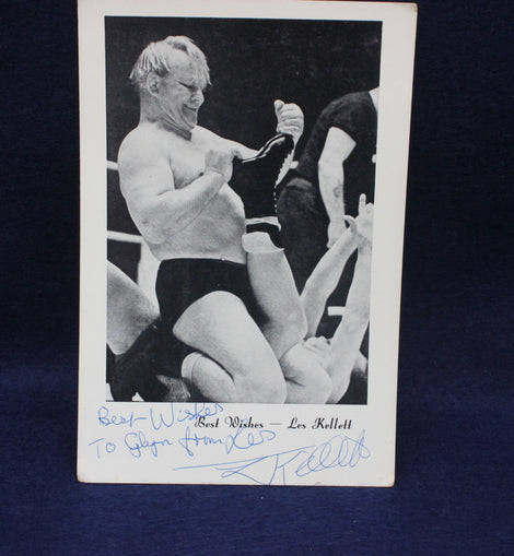 Leslie Kellett autographed photo print. Les was an English professional wrestler in the 60's and 70's  born in Laisterdyke, Bradford.