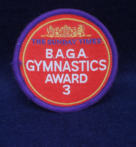 Vintage Sew on Badge B.A.G.A Gymnastics Award 3 The Sunday Times.