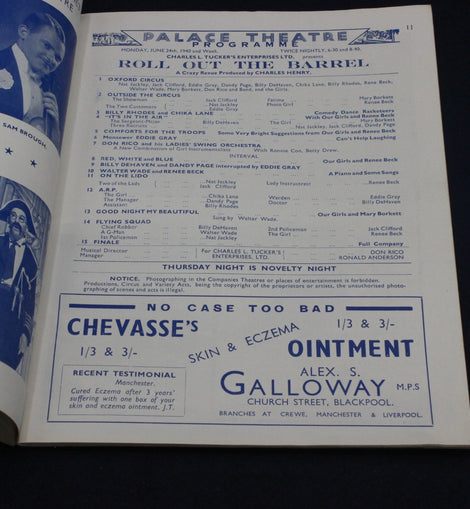 The inclusion of Dixon’s twice‑daily performances in this programme places it firmly in the early wartime period, just before the summer of 1940 brought major changes to public entertainment. The follow‑on feature — the Grand Spectacular Children’s Ballet, Let the Children Sing — reflects the era’s emphasis on uplifting productions designed to inspire hope and community spirit.
