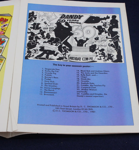 Complete anniversary issues with the original poster intact are increasingly hard to find, making this a desirable item for collectors of British comics, DC Thomson memorabilia, and fans of classic cartoon art.