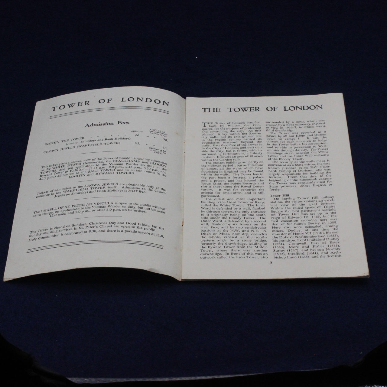 With its classic mid‑century design, royal coat of arms, and original threepence price, this booklet is ideal for collectors of vintage government publications, London history, and historic site ephemera. A charming and authentic snapshot of how the Tower was presented to the public in the late 1940s.
