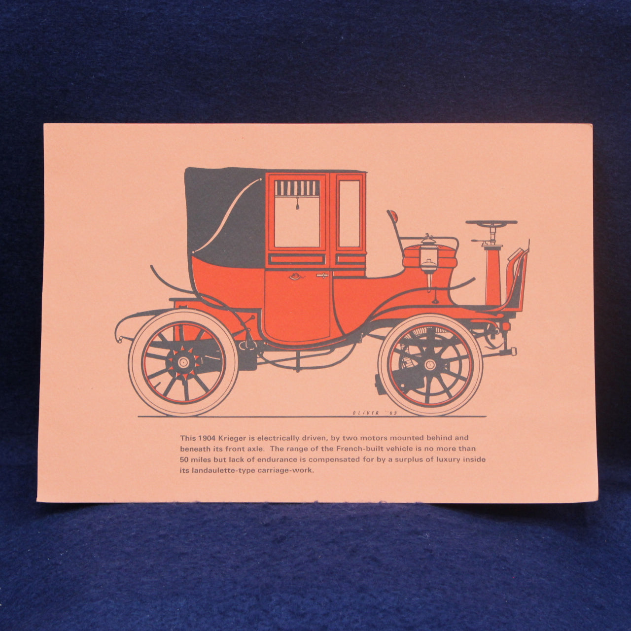 During the 1950s and 1960s, illustrated motoring cards and book plates became popular as educational inserts in encyclopaedias, part‑works, and themed annuals. They offered accessible snapshots of early automotive engineering, from steam‑powered pioneers like the Stanley to electric and petrol‑hybrid experiments such as the Krieger.