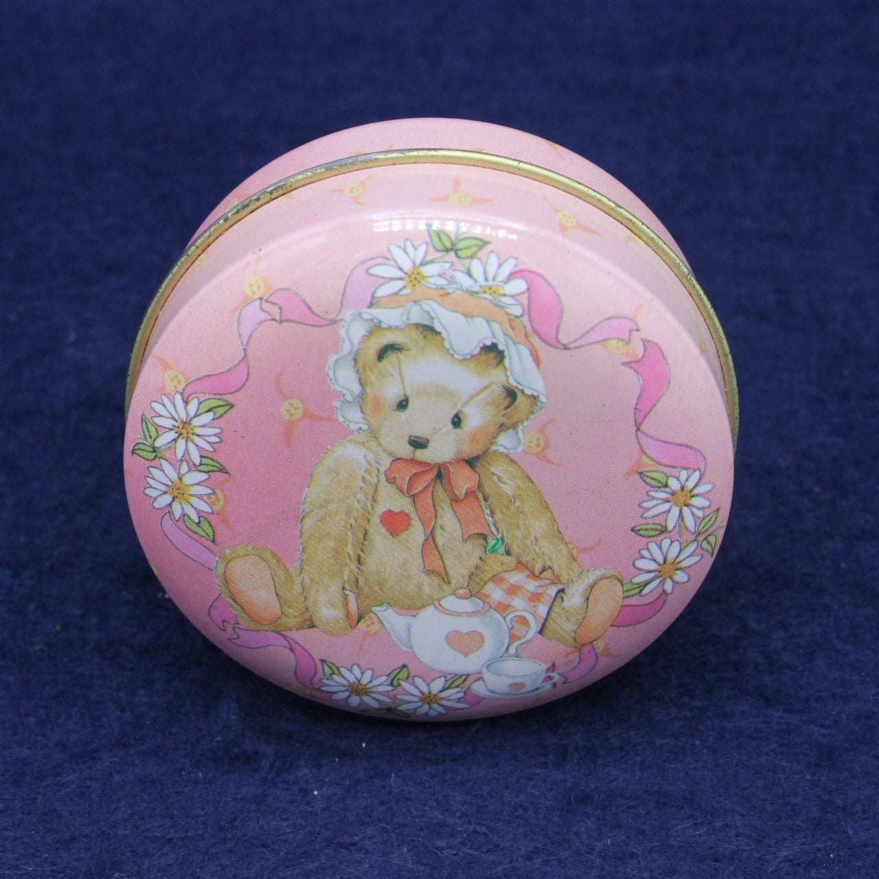 This petite round tin captures the gentle, heartwarming style collectors adore, making it perfect for display, gifting, or storing tiny keepsakes. Its compact size and nostalgic design appeal to fans of vintage giftware, teddy bear memorabilia, and 1990s collectibles. Ideal for adding a sweet decorative touch to a craft room, nursery shelf, or vintage‑themed display.