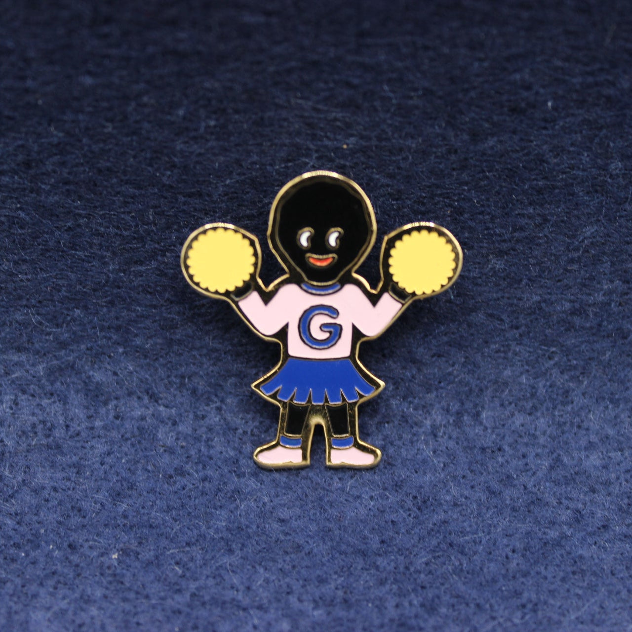 Crafted in hard enamel with a gilt metal outline, the Cheerleader Golly formed part of the 1996 “Characters & Costumes” set — a collection produced in smaller quantities than the earlier 1980s badges. Clean examples with crisp enamel and bright gilt, like this one, remain especially desirable among collectors of Robertson’s memorabilia, enamel pin enthusiasts, and anyone curating a nostalgic British display.