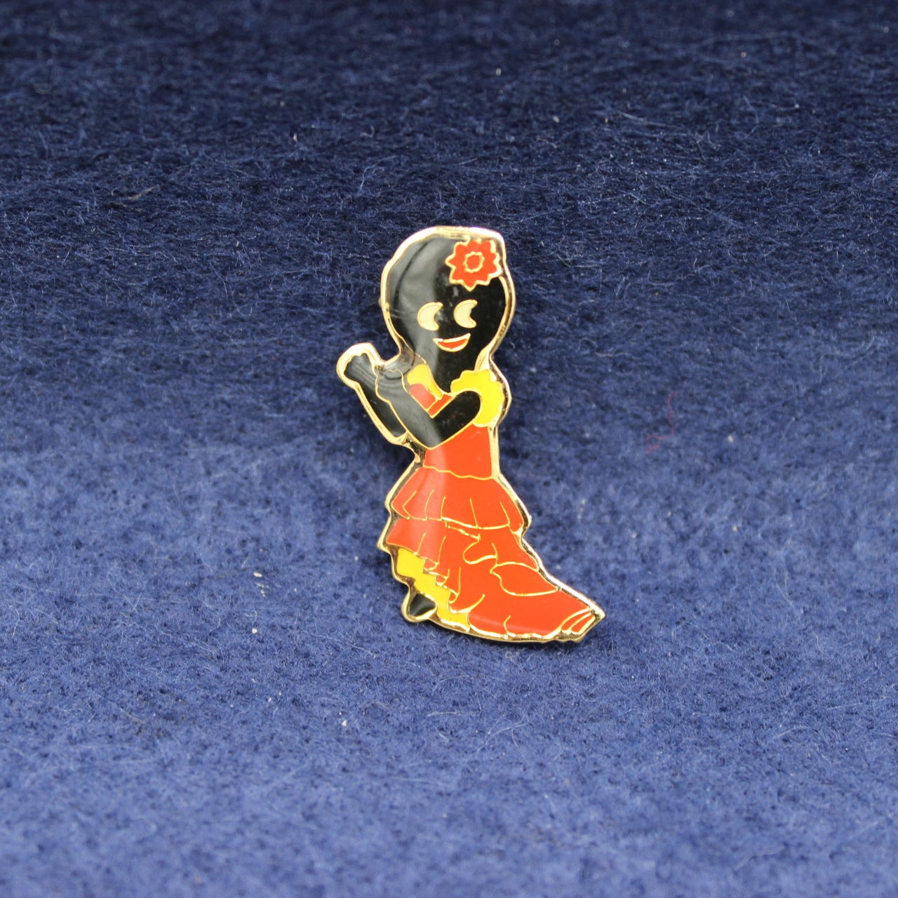 This Flamenco badge is part of a five‑piece limited edition bubble‑coat set, issued exclusively between 31 May and 1 November 1996. The full set comprised: Flamenco, Clown, Pirate, Mountie and Baby Golly badges (the rarest, known to achieve exceptional auction prices). The bubble‑coat finish gives each badge a sculpted, domed texture that stands apart from the standard smooth‑coat versions. Surviving examples are increasingly scarce, and collectors actively seek them to complete the full 1996 variant run.