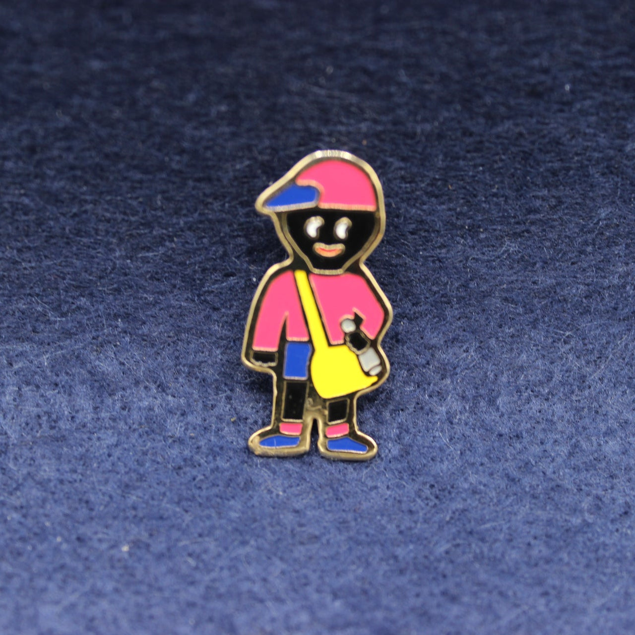 Add a cheerful slice of 90s nostalgia to your collection with this original 1996 Robertson’s Paperboy Golly badge. Dressed in a bright red shirt and matching cap, blue shorts and a yellow cross‑body paper sac, this lively enamel pin captures the upbeat charm of the late‑era Golly designs. The Paperboy Golly holds a rolled newspaper, a detail that gives the badge its distinctive theme and makes it instantly recognisable among collectors.