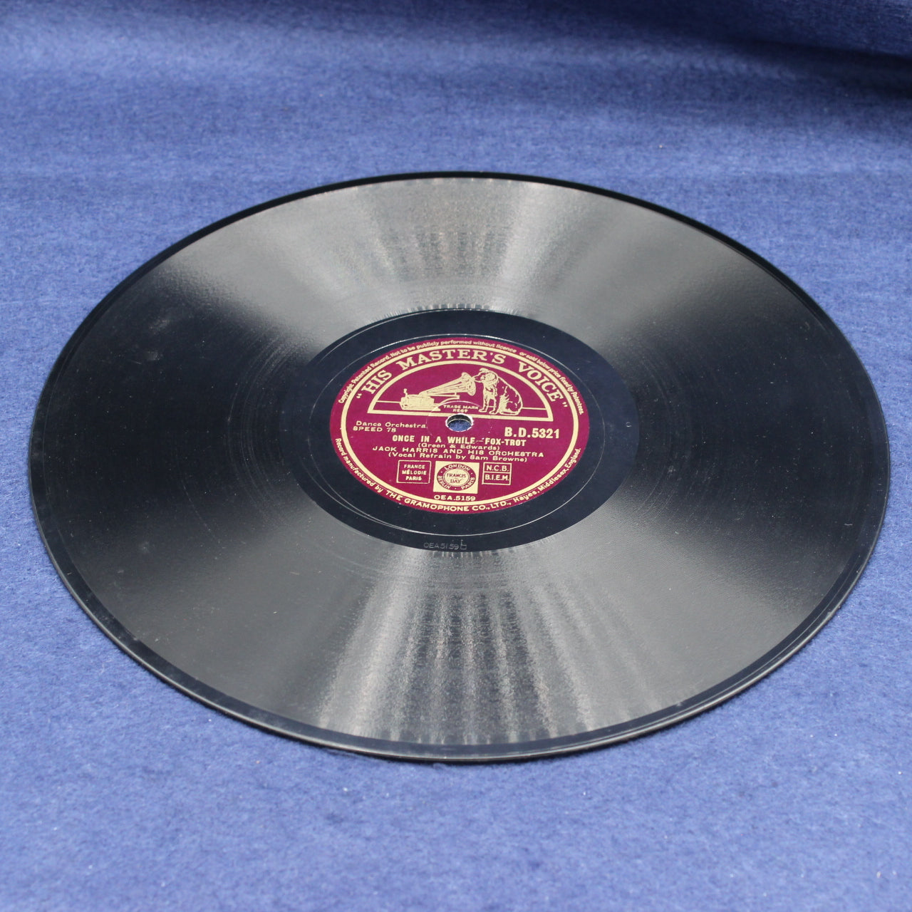 Jack Harris, an American‑born bandleader active in Britain, became known for his smooth dance‑band arrangements and polished orchestral sound. His recordings on His Master’s Voice (HMV) remain popular with collectors for their quality and distinctive label design. HMV’s 78 rpm catalogue covered a wide range of dance, jazz and popular music, making it one of the most recognisable labels of the shellac era.