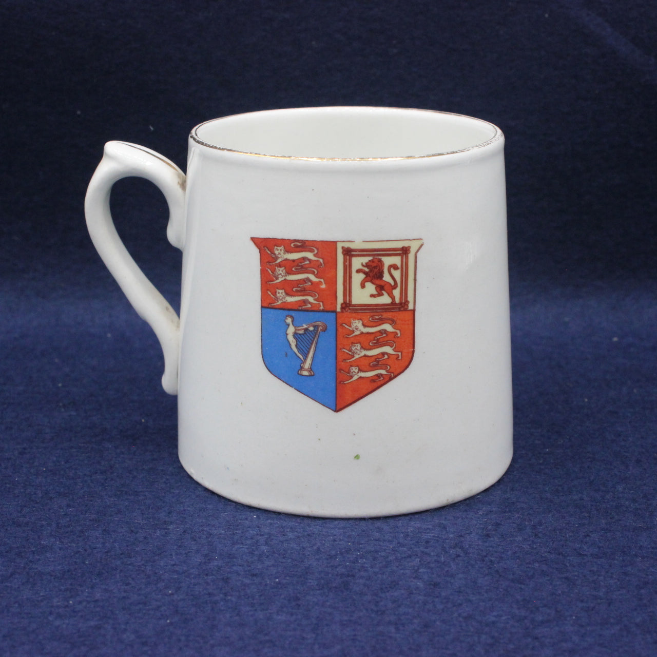 A fine commemorative mug produced for the Coronation of King George V and Queen Mary in 1911. Decorated with regal motifs and crest‑style designs, it captures the pageantry of the early Georgian era and the optimism of pre‑war Britain. A distinguished piece of royal memorabilia for collectors of Edwardian and early 20th‑century ceramics.