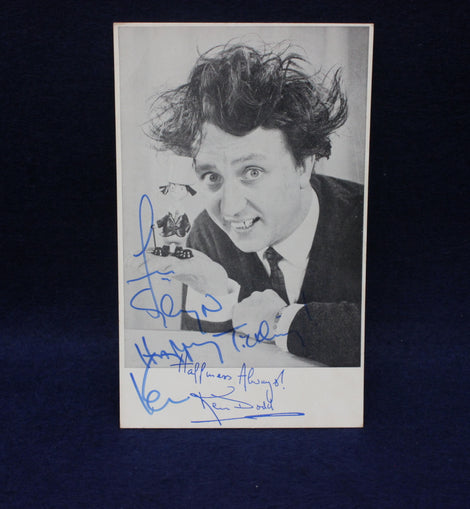 Sir Kenneth Arthur Dodd was an English actor, singer and comedian, primarily known for his live stand-up comedy performances. Autographed photo.