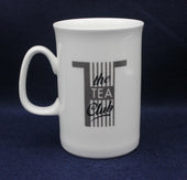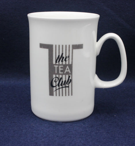 White Berkshire Fine Bone China mug with simple Tea Club logo. Tea Club followers collectors mug.