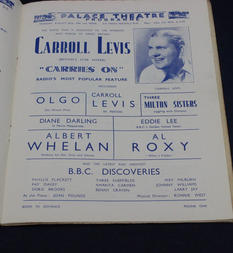 Souvenir programmes like this were sold exclusively at the venue and were often discarded after holidays, making surviving examples increasingly collectable. The atmospheric artwork — rendered in rich blues and yellows — reflects the mid‑century style associated with Blackpool’s golden era, when the resort was at the height of its popularity and the Tower and Winter Gardens hosted world‑class entertainment.