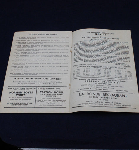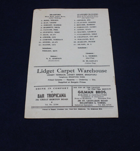 Sold exactly as shown, this is a highly collectable item for fans of Bradford Park Avenue, Stafford Rangers, and anyone building a serious archive of grassroots football history.