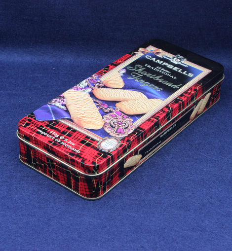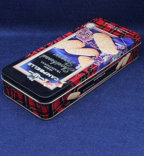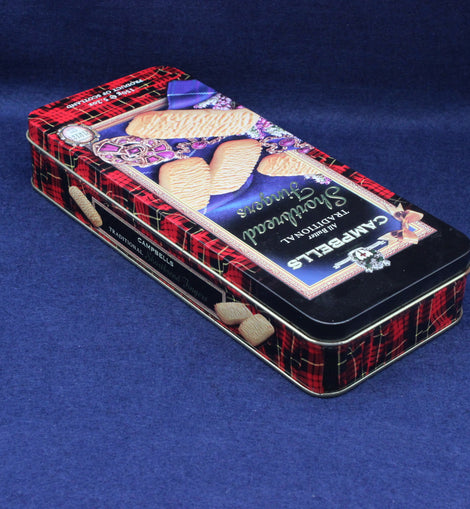A charming Campbells Scottish Shortbread tin, decorated in the brand’s classic tartan styling and traditional Scottish motifs.