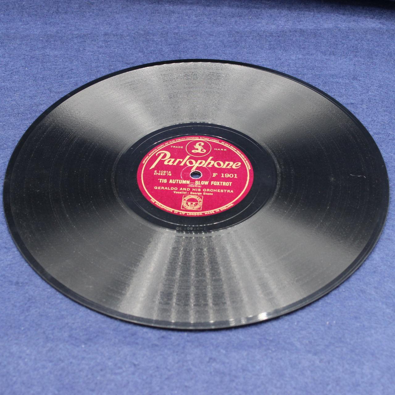 The record presents well for its age, with clean labels and strong gloss to the shellac. Light surface marks typical of 78s may be present, but nothing that detracts from playability or display. A solid example for collectors of dance‑band recordings, Parlophone issues or pre‑LP era music.