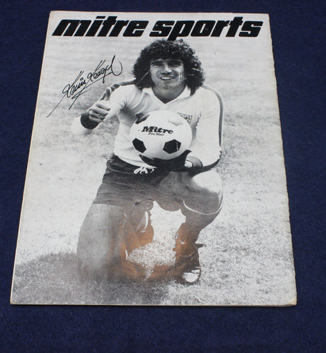 On the back cover, there’s a striking black‑and‑white Mitre Sports advert featuring Kevin Keegan, complete with printed signature and Mitre Pro Star ball — a classic period image of one of England’s greatest footballers.