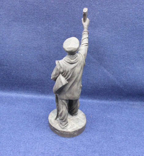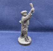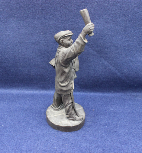 1985 paperboy figurine celebrating the 50th Anniversary of the Forbuoys Newsagent chain (now Mc Colls.) Paperboy in a flat cap holding a newspaper high and holding a sign: "Extra Forbuoys 50th Anniversary 1935-1985."