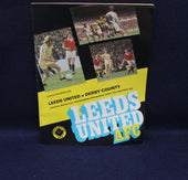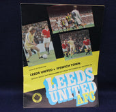 Vintage Leeds United AFC football match programme against Ipswich Town on a dark background