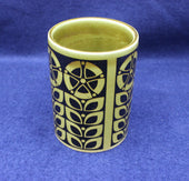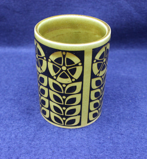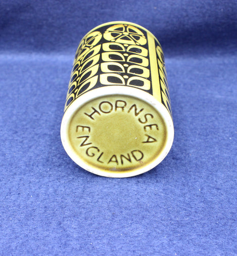 Attractive retro patterned green and brown vase. Stamped Hornsea Pottery on the base. Small, dainty vase 8cm tall by 6cm wide.