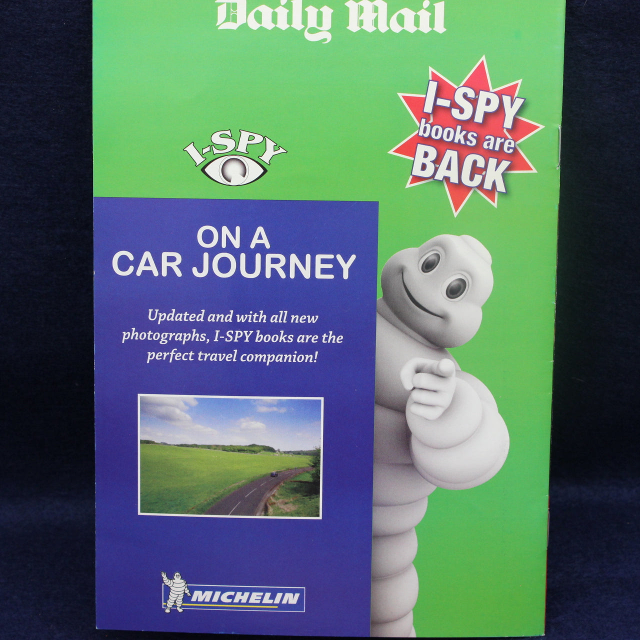 A bright and appealing copy of I‑Spy On a Car Journey, the classic motoring‑themed spot‑and‑score booklet produced in partnership with the Daily Mail and Michelin. A lovely example of the kind of travel entertainment that defined British family car journeys before the digital age.