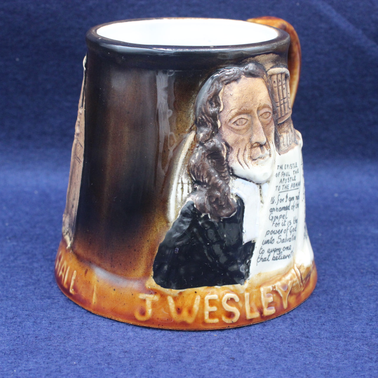 Produced by Great Yarmouth Potteries, the mug reflects the late 20th‑century trend of issuing commemorative ceramics for religious, civic, and royal occasions. The textured portrait of Wesley underscores his enduring influence, while the depiction of the Central Hall celebrates the building’s role as a hub of worship and fellowship.