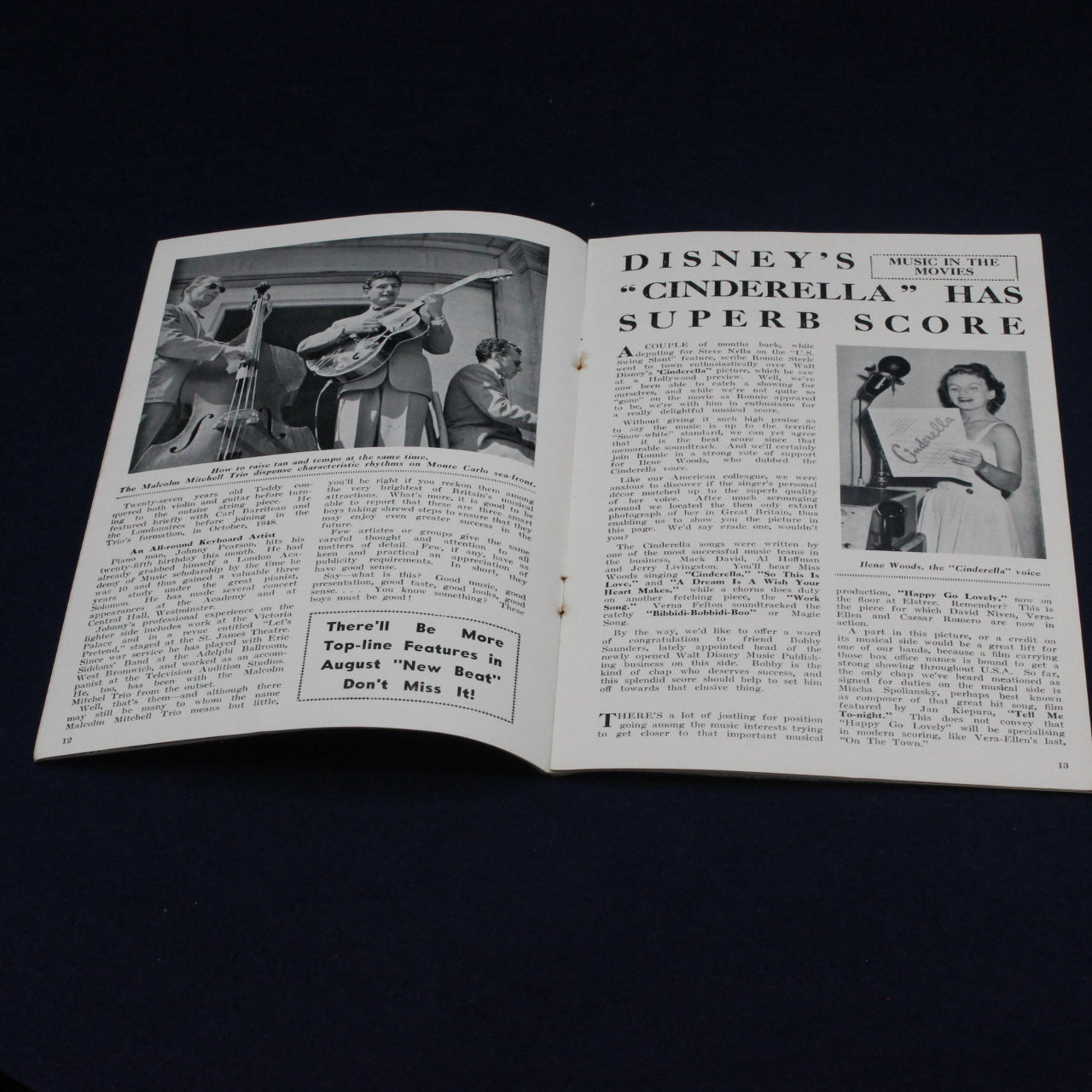 This original July 1950 issue of The New Beat magazine is a vibrant piece of mid‑century music and entertainment history. Billed as “The World’s Brightest Modern Music Magazine,” this edition features a charming cover photograph of Phil Harris and Alice Faye, along with articles and features on leading performers of the era including the Malcolm Mitchell Trio, Jo Stafford, and Donald Peers.