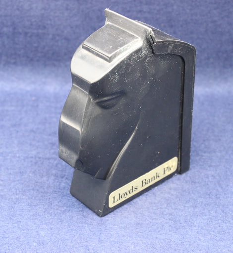 A nostalgic Lloyds Bank Black Horse money box, featuring the bank’s iconic black horse emblem — one of the most recognisable symbols in British financial branding. This classic promotional money box would once have been given to customers, especially children, to encourage saving habits and brand loyalty.