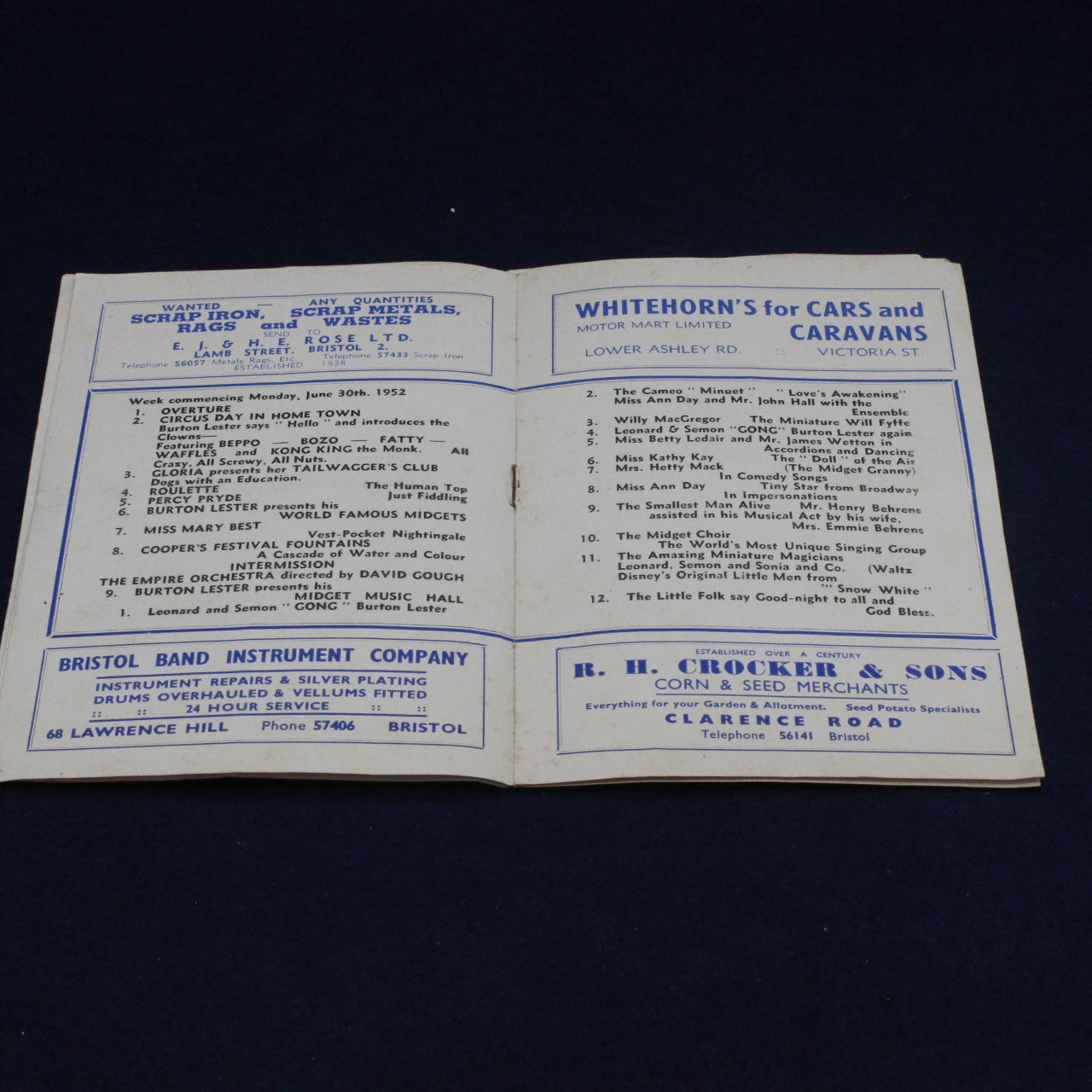 During the early 1950s, theatre programmes doubled as essential advertising platforms for local businesses, holiday resorts, and new consumer products. As post‑war Britain embraced leisure, travel, and modern conveniences, venues like the New Empire Bristol became hubs for both entertainment and commercial promotion.