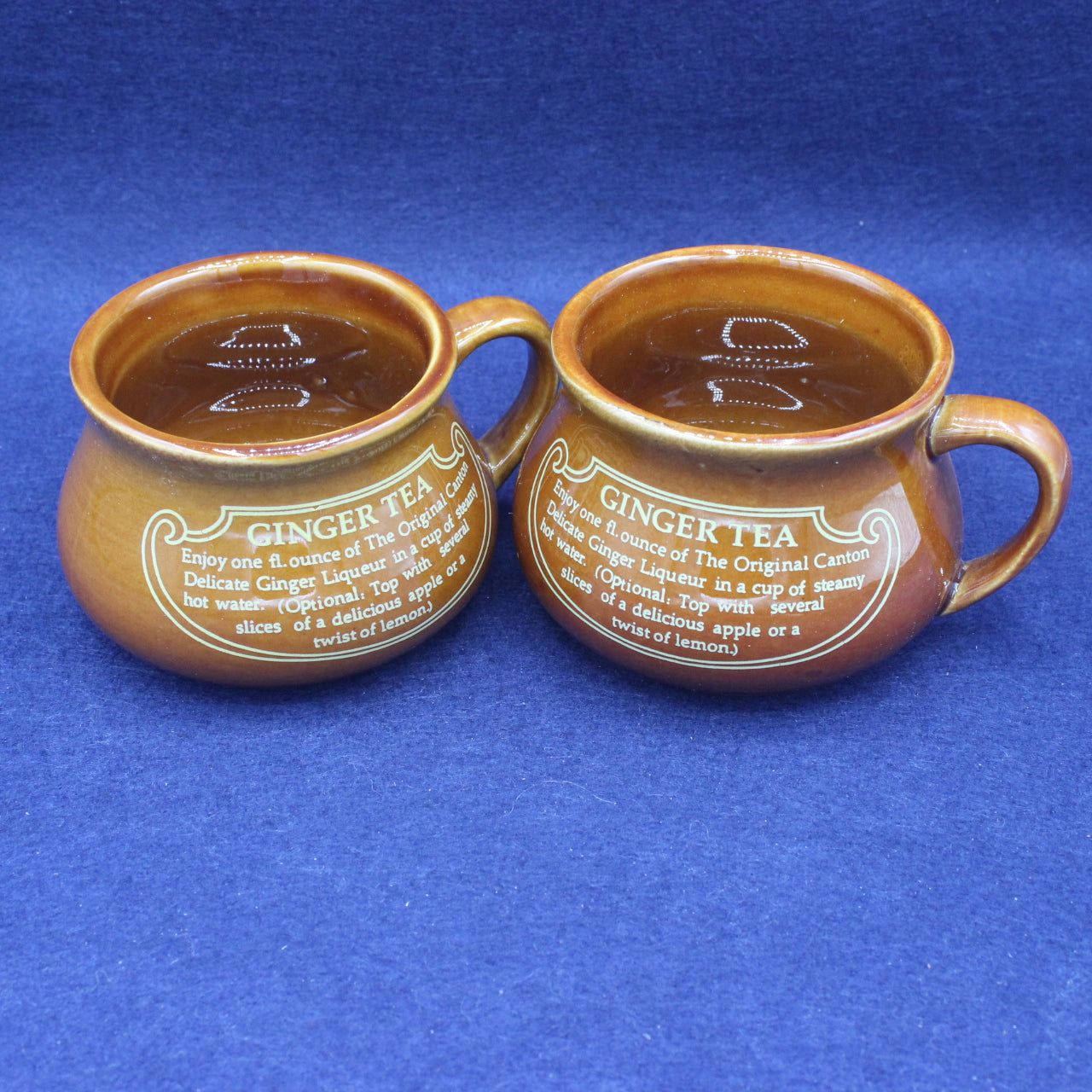 Pair of Vintage Canton Ginger Liqueur Shallow Mugs With Recipe