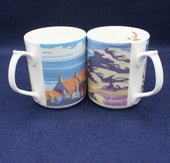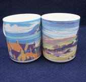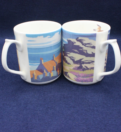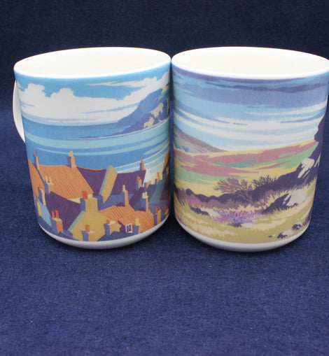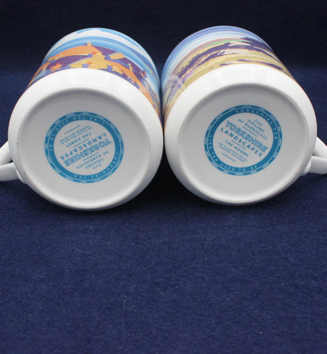 Taylors of Harrogate pair of Yorkshire Landscapes Mugs. One is entitled The Coast and the other "The Moor." Charming pair of mugs for Yorkshire lovers in unused excellent condition.