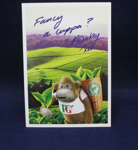 Fancy a Cuppa? Monkey PG Tips Tea promotional card 13cm x 18cm. A must have addition for the PG Tips monkey fans.