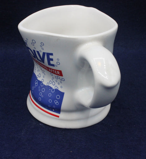 Quirky Beechams Resolve Vintage Collectors Mug. Red white and blue mug with text Beechams Resolve for the morning after.