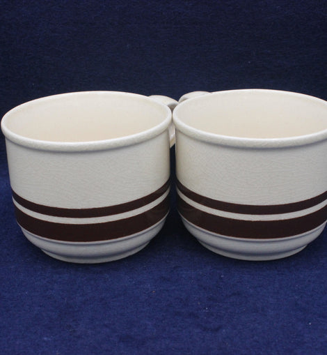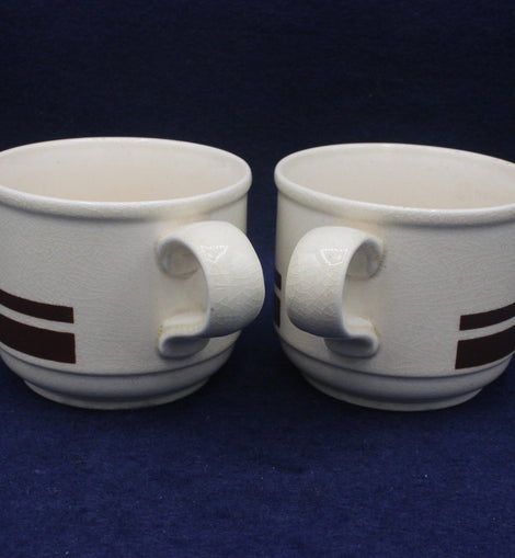 • Retro Style Brown and Cream Staffordshire Pottery Cups Saucers and Plate Set