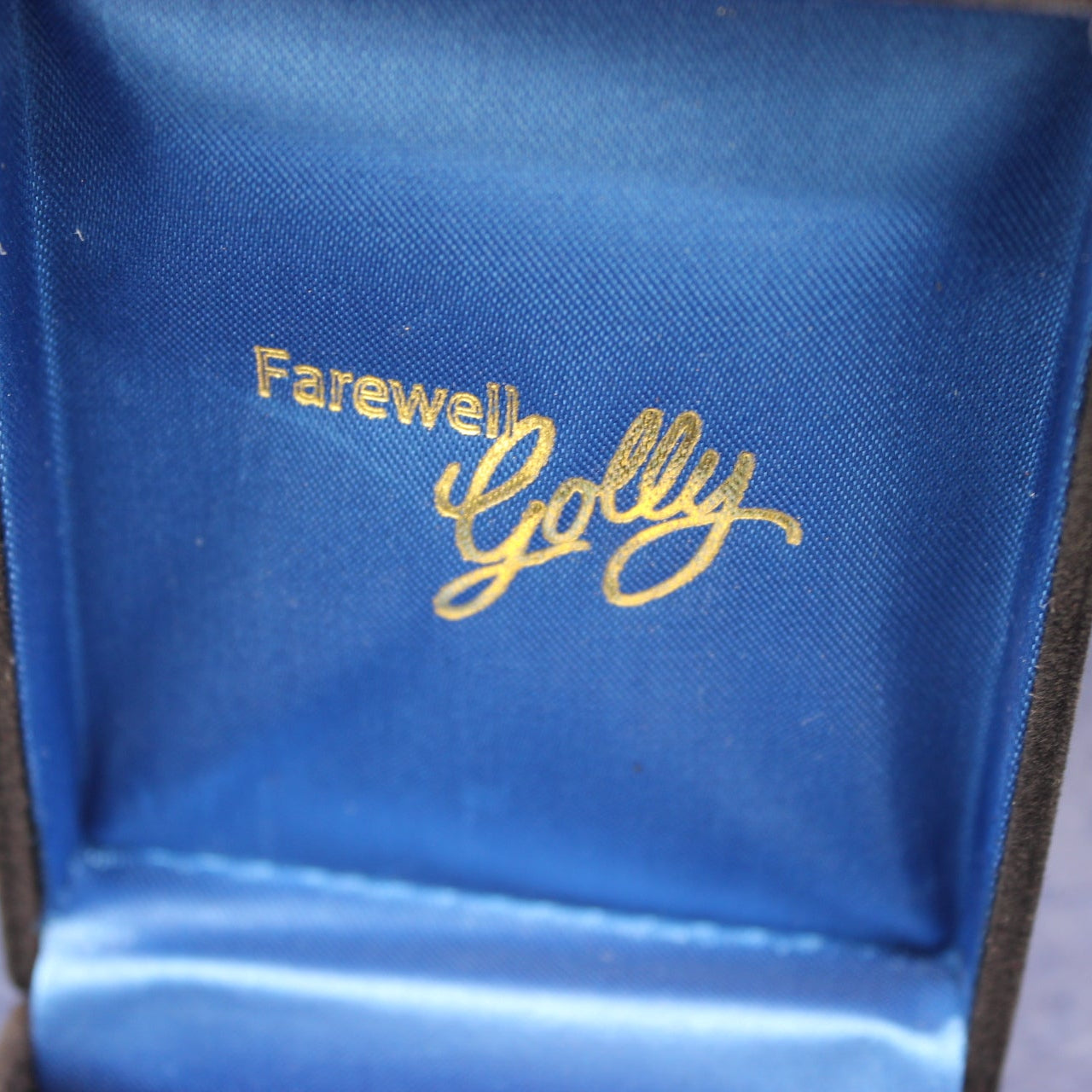 Collectors especially value examples that remain complete with their original pin fittings, black velour presentation case and official certificate, as these elements were only supplied with the genuine 2001 farewell issue. When preserved in excellent condition, the 2001 Gold Farewell Golly stands as a centrepiece item — a historically important, limited‑run badge marking the final chapter of Robertson’s Golly production and the end of an iconic British promotional tradition.