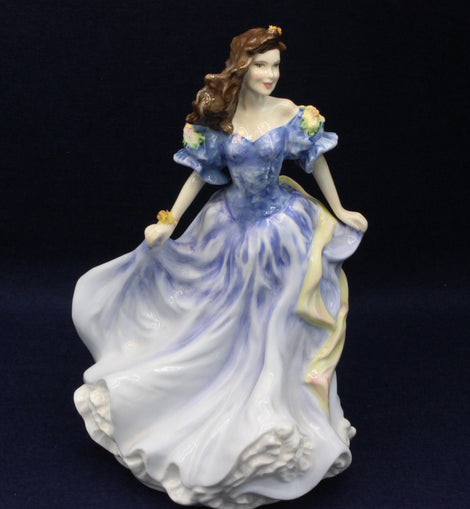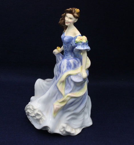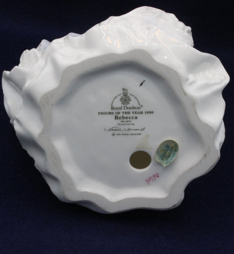 Royal Doulton, one of Britain’s most celebrated makers of fine ceramics, introduced the Figure of the Year series to highlight exceptional artistry and craftsmanship. Rebecca, designed by Peggy Davies, reflects the romantic style of the late 1980s, with delicate detailing and soft colour tones.