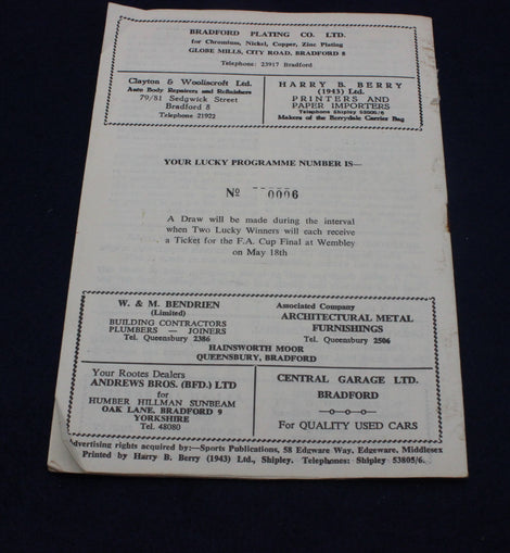 Sold exactly as shown, with condition reflecting materials of their day, these programmes are ideal for collectors, Bantams supporters, or anyone building a historical archive of Bradford City memorabilia.
