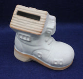 A nice addition for shelf pottery or money box fans. This boot money box is in original condition. 12cm wide x 10cm high