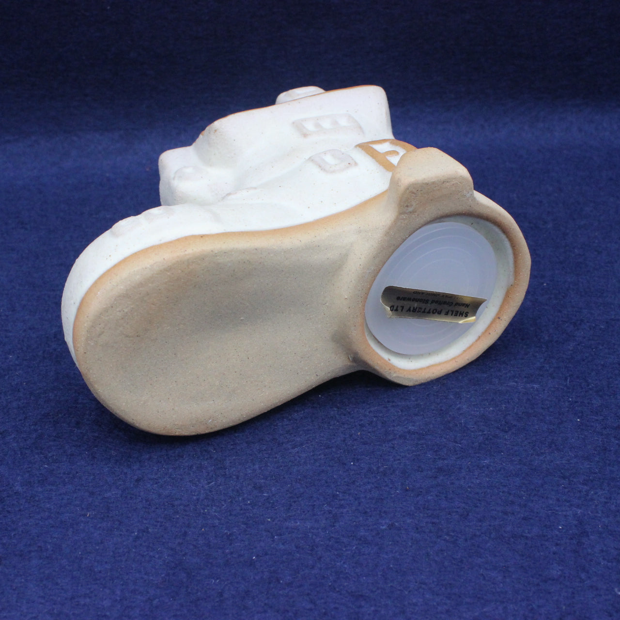 Shelf Pottery, based in West Yorkshire, became known for its imaginative ceramic designs, often inspired by everyday objects given a playful twist. Novelty moneyboxes like this boot were popular gifts and household ornaments, combining practical use with decorative appeal.