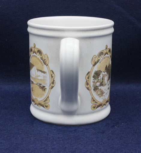 From the 1970's Regions and Countries Collection made for Cadbury's in the late 1970's. White chunky stoneware mug with scenes of the South East. Perfect condition with official Denby stamp.