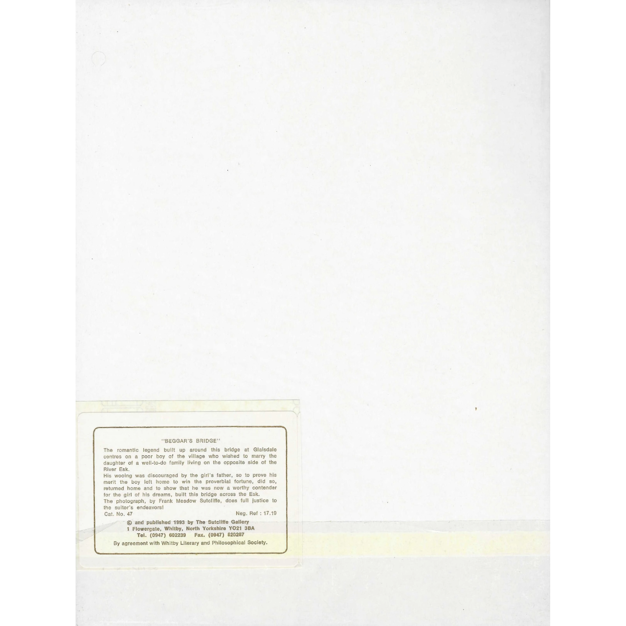 Beggar’s Bridge, near Glaisdale in North Yorkshire, is steeped in local legend and admired for its enduring stonework. Prints from The Sutcliffe Gallery continue the tradition of Frank Meadow Sutcliffe’s evocative studies, portraying authentic scenes of landscape and community with artistry and atmosphere.