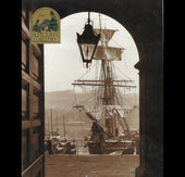 A nostalgic vintage print from The Sutcliffe Gallery, Whitby, titled Through the Station Doorway. The composition frames the view from Whitby’s railway station entrance, looking outward to the harbour where a tall sailing ship is moored. The striking juxtaposition of railway architecture and maritime heritage captures the essence of Whitby as a town shaped by both travel and the sea.