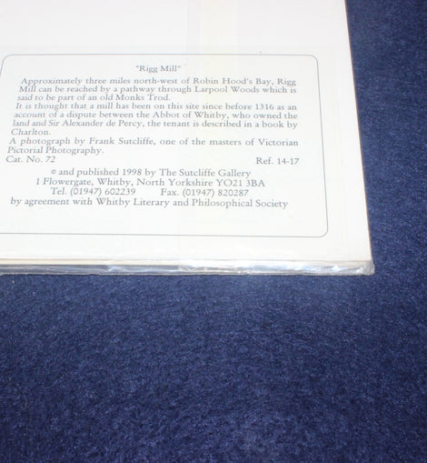 Frank Meadow Sutcliffe photography. Original print from the Sutcliffe Gallery Whitby entitled "Rig Mill. " Original unopened packaging. Print size 275 x 211mm Published 1998 by The Sutcliffe Gallery.