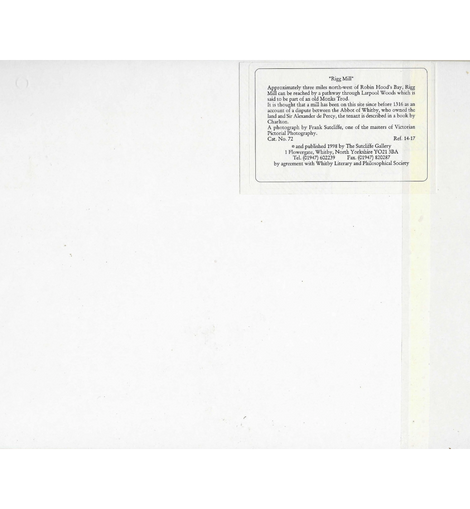 A serene vintage print from The Sutcliffe Gallery, Whitby, titled Trees in a Misty Valley. The image depicts tall trees rising through a soft veil of mist, set within a quiet valley landscape. The composition conveys tranquillity and atmosphere, capturing the timeless beauty of Yorkshire’s countryside in a moment of stillness.
