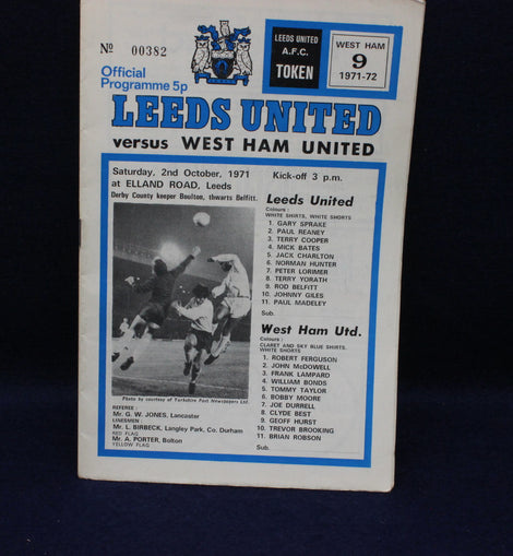 Leeds United football programmes for sale as pictured. Leeds United home games from 1971 -72 as pictured. Lot A14