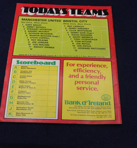 The 1979–1980 season marked a time of rebuilding for Manchester United as the club navigated the years following the Busby era. English football was changing rapidly, yet matchday programmes remained a vital part of the supporter experience — a blend of club news, player features, and local advertising that reflected the culture of the time.