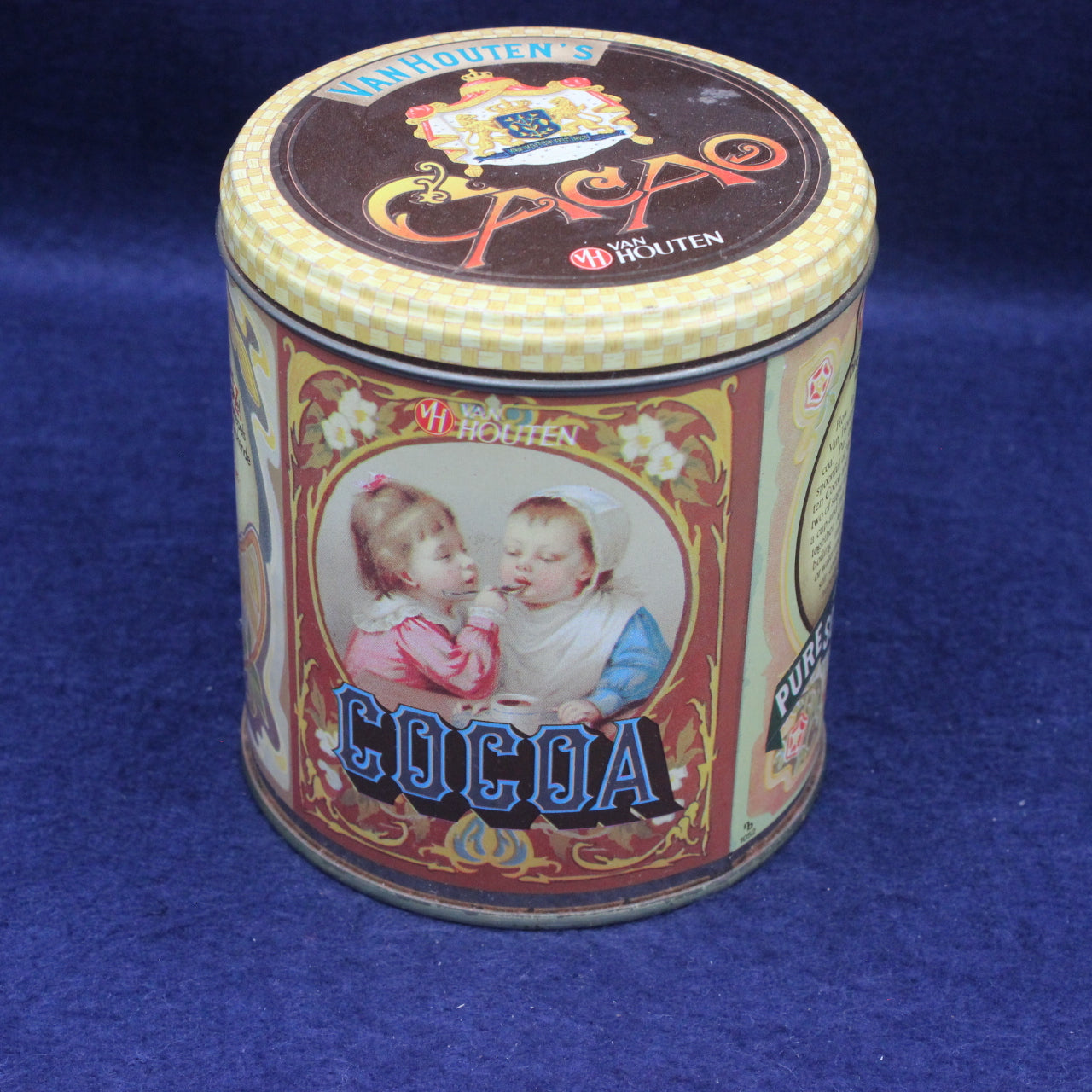Van Houten, founded in the early 19th century, became one of the world’s best‑known cocoa brands. Their early tins featured ornate artwork, children’s illustrations and decorative crests — designs that later inspired a wave of reproduction tins sold throughout the 1980s and 1990s.