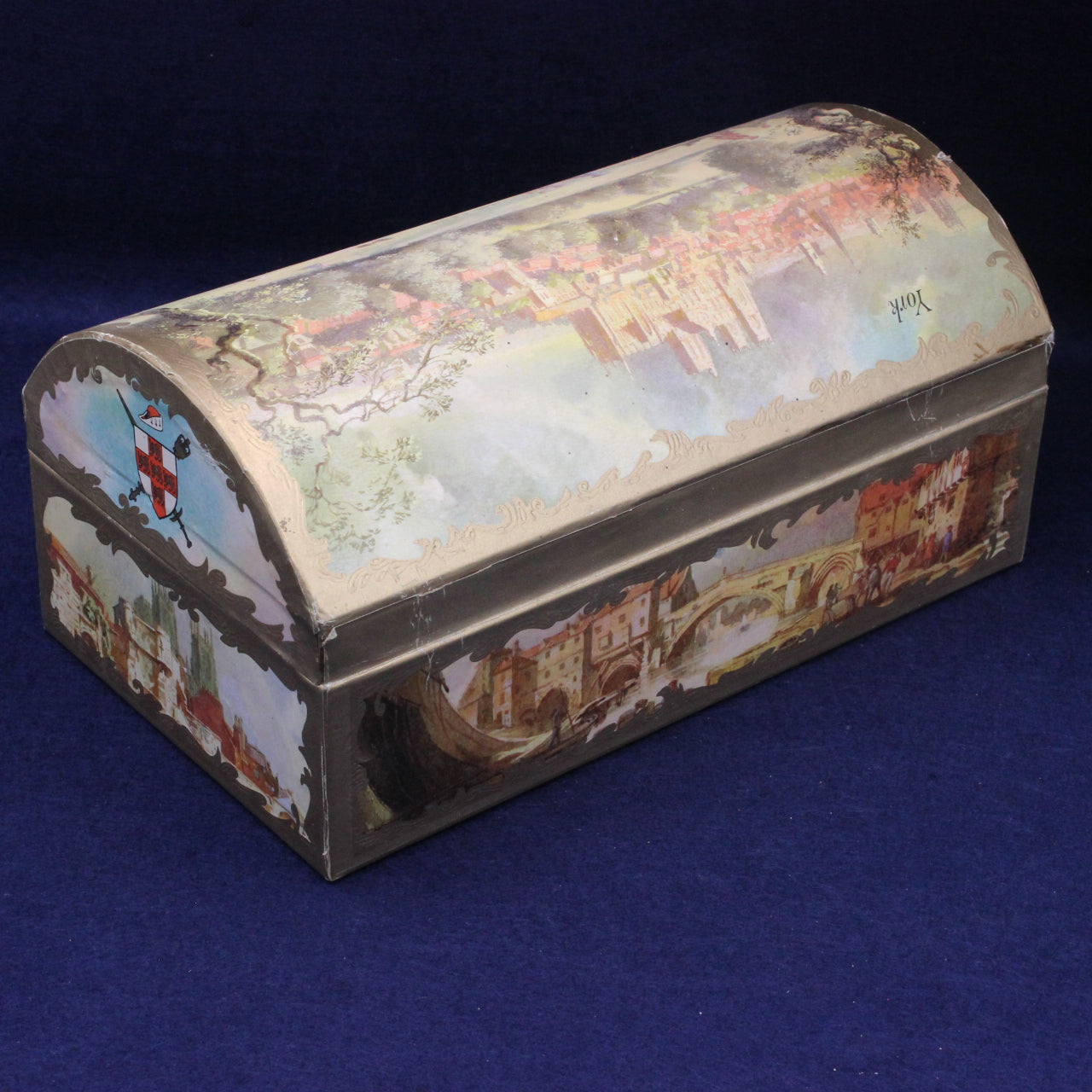 A delightful vintage chocolate box chest dating from the 1960s, designed to resemble a miniature chest or casket. With its decorative finish and period styling, this piece reflects the mid‑20th‑century tradition of presenting confectionery in ornate containers that could be reused long after the chocolates were enjoyed.