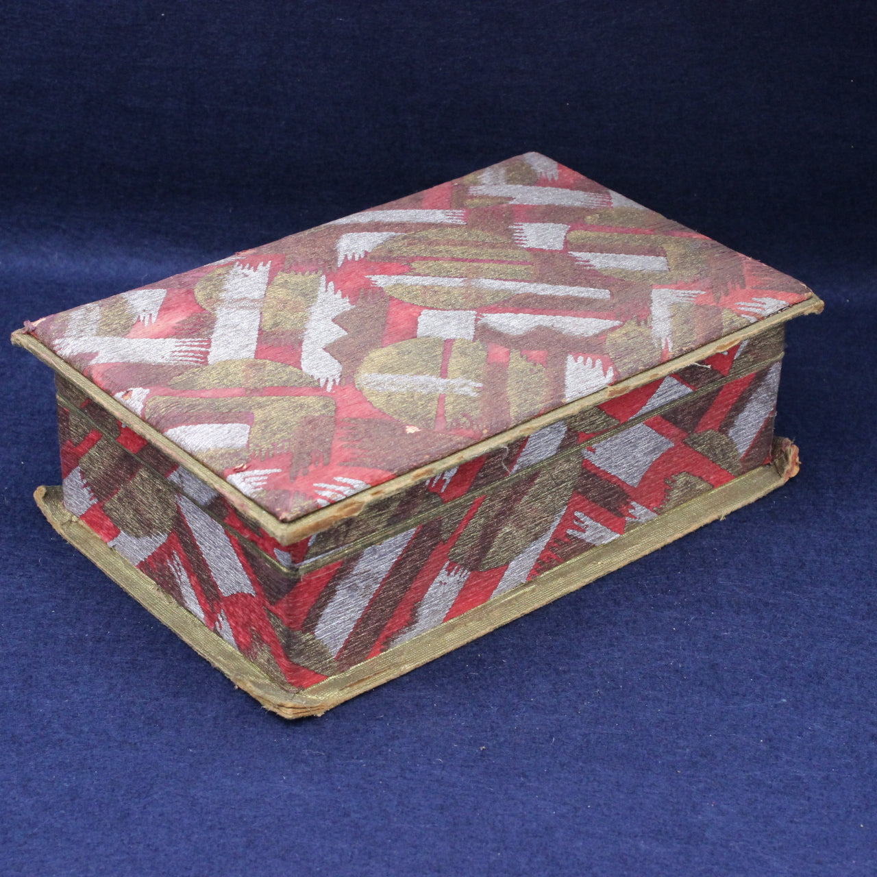 The fabric covering adds a tactile and refined quality, making this piece stand out as both a nostalgic keepsake and a decorative collectible.